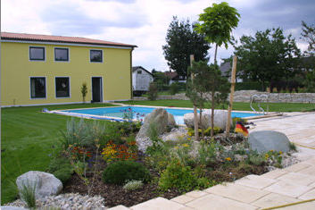 Unser großzügiger Garten mit Pool und Liegewiese zum